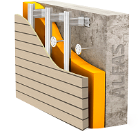 - подоблицовочная часть, которая прикрепляется к стене таким образом, чтобы между стеной и облицовочным материалом образовалась воздушная прослойка,